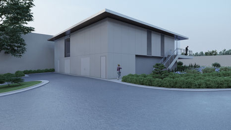 The first level houses the machinery for water treatment, while the second level accommodates offices and machine control rooms.